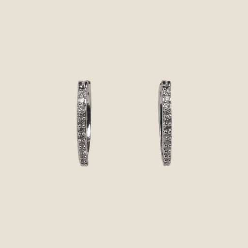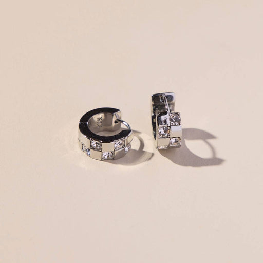 Nickel and Suede - Silver Pavé Checkered Huggies