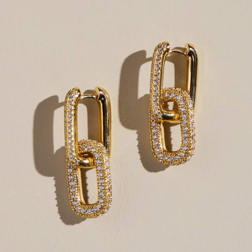 Nickel and Suede - Gold Pavé Double Link Hoops: Gold