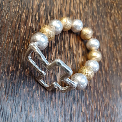 Paco Designs - Mixed Metal Beaded Stretch Cross Bracelet