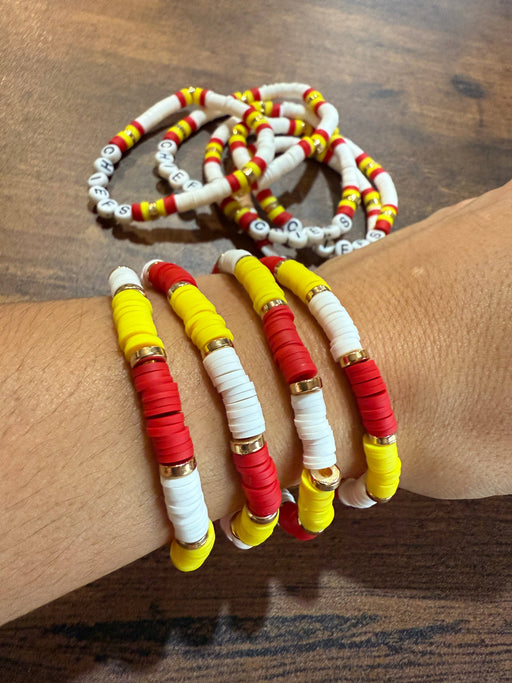 Original price $10.00 - Original price $10.00Original price$10.00$10.00 - $10.00Current price $10.00| /KC Chiefs Heishi Home Game Bracelet is made with red, white and yellow heishi beads. The fun color blocking makes this a stand out bracelet greact ...