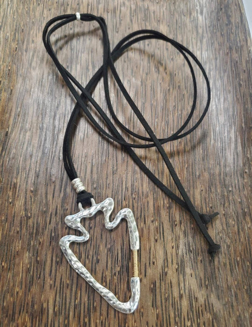 Paco Designs - Matte Silver Arrowhead Necklace on 30" black suede cord.