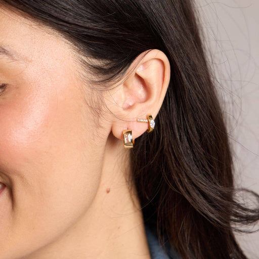 Nickel and Suede - Gold Square Huggies: Gold