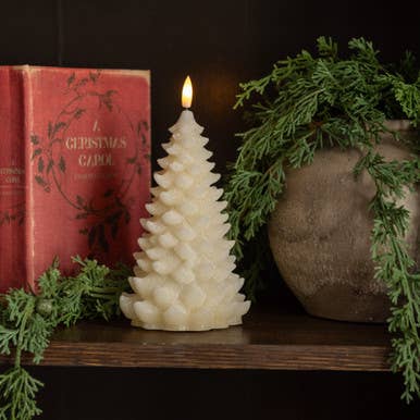 Ragon House - 8" CREAM SHIMMER 3D FLAME BALSAM TREE CANDLE