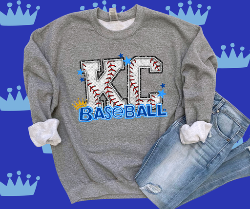 The Red Rival Wholesale - KC Baseball Letters Grey Graphic Sweatshirt: Large