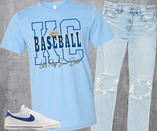 The Red Rival Wholesale - KC Baseball, Let's Play Some Ball Light Blue Tee: X-Large