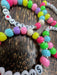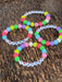 These adorable little bracelets for boys and girls. Light colored pony beads and silver spacer beads come are strung together by hand to 6.5 inches in length. White Acrylic letters spell out I LOVE JESUS! Great for VBS this coming summer. Great in Easter baskets too!  6.5 inches is standard child size.
